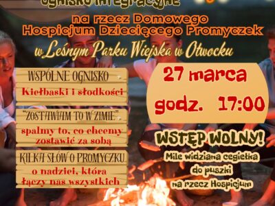 Rozpalmy nadzieję – wspólne ognisko dla wszystkich! Czasem wystarczy ogień, kilka rozmów i ludzie obok, żeby zrobiło się cieplej – nie tylko na zewnątrz, ale też w sercu. Dlatego zapraszamy Was na otwarte ognisko integracyjne, na które może przyjść absolutnie każdy. 27 marca godz.Charytatywne Warsztaty Kulinarne z Kingą Wierzbicką na rzecz Promyczka!